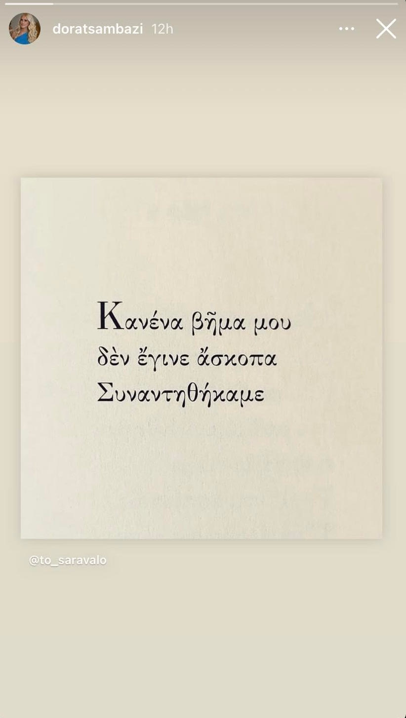 “Κανένα βήμα μου δεν έγινε άσκοπα. Συναντηθήκαμε”, έγραφε η φωτογραφία που ανέβασε σε στόρι στον λογαριασμό της στο Instagram