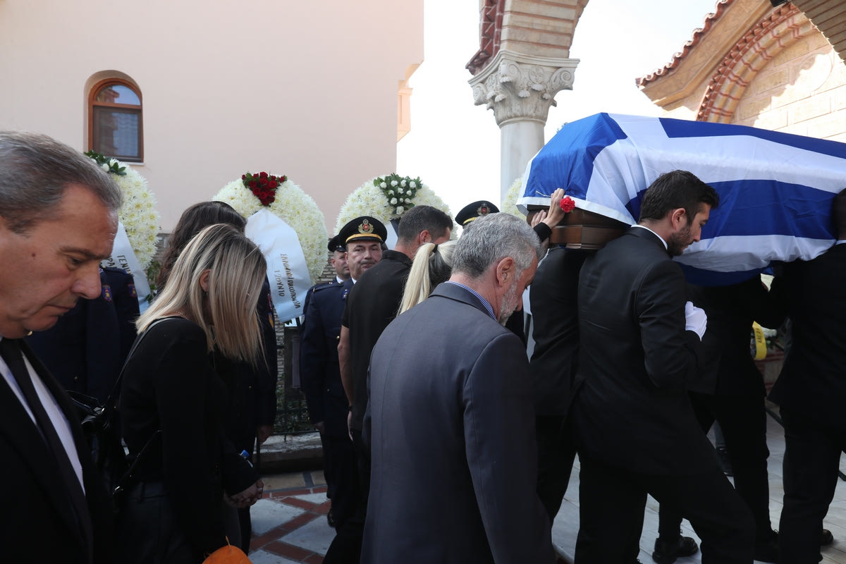 Το φέρετρο ήταν τυλιγμένο με την ελληνική σημαία, ενώ επειδή υπηρετούσε στο σώμα της Πυροσβεστικής υπήρξε άγημα του Πυροσβεστικού σώματος.
