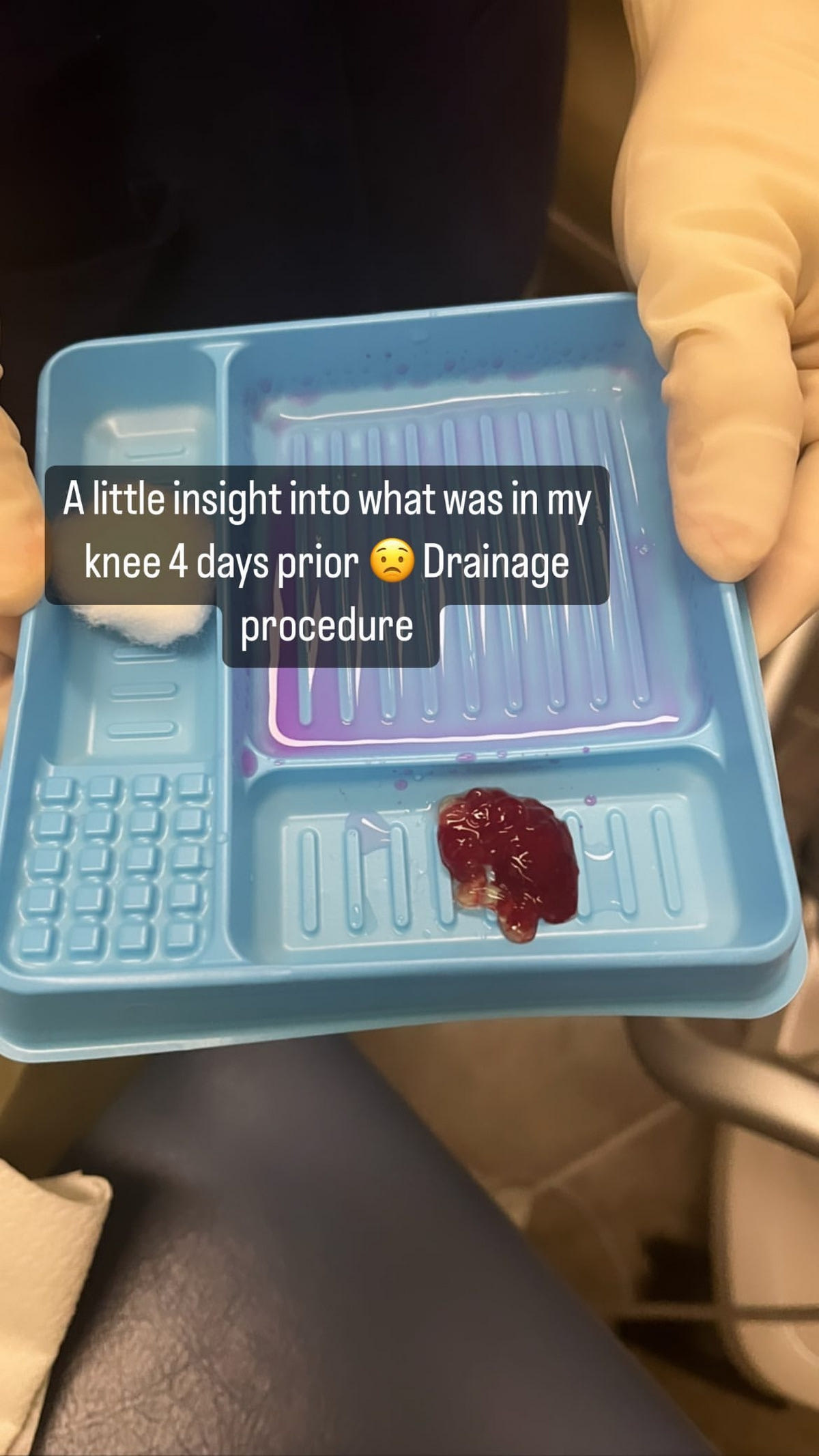 “Μια μικρή εικόνα για το τι ήταν στο γόνατό μου τέσσερις ημέρες πριν”, έγραψε συγκεκριμένα.
