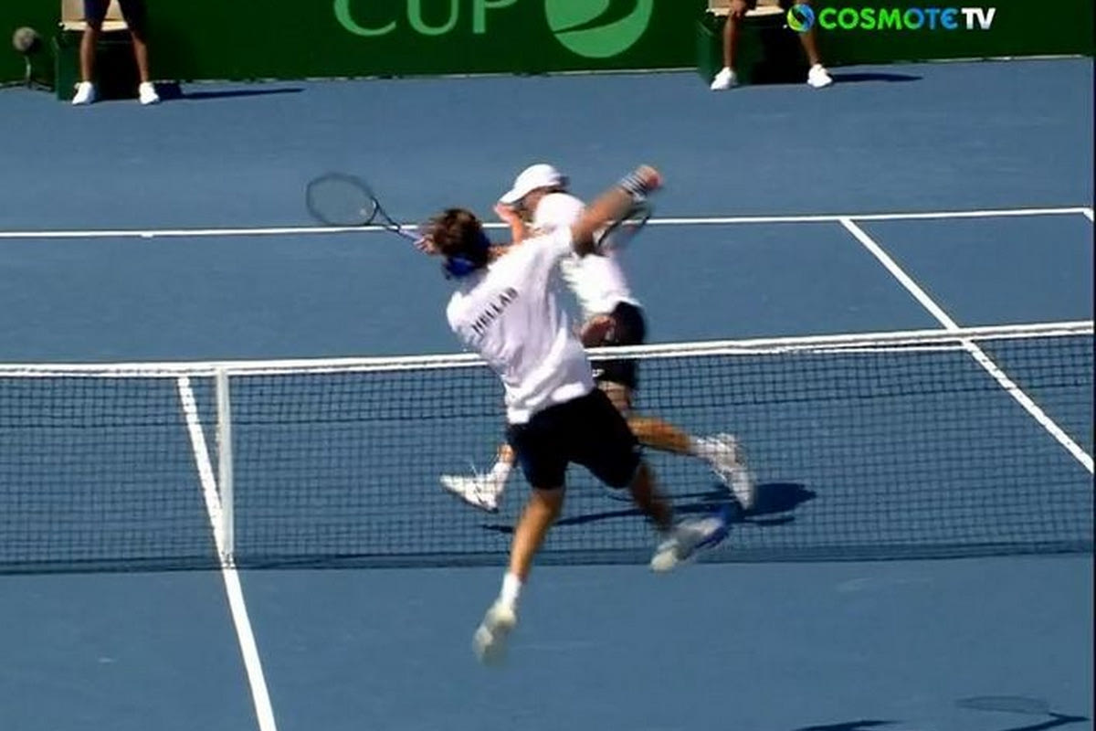 Davis Cup: Ο Τσιτσιπάς βρήκε άθελά του με smash τον Κλέιν