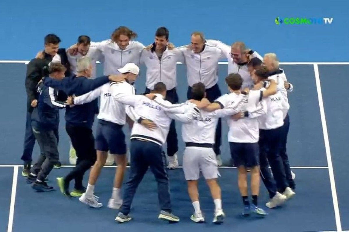 Davis Cup: Το συρτάκι του Στέφανου Τσιτσιπά και της ελληνικής αποστολής μετά το 4-0 επί της Ρουμανίας