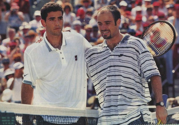 Ο ελληνικής καταγωγής Σάμπρας θεωρούνταν ο καλύτερος ή πιο σωστά πληρέστερος τενίστας όλων των εποχών, αλλά ο Άγκασι από Ιρανό πατέρα ήταν ήταν ο μεγαλύτερος σταρ. Και τους δύο ξεπέρασε ο Ρότζερ Φέντερερ και πιθανότατα ο Ράφα Ναδάλ.