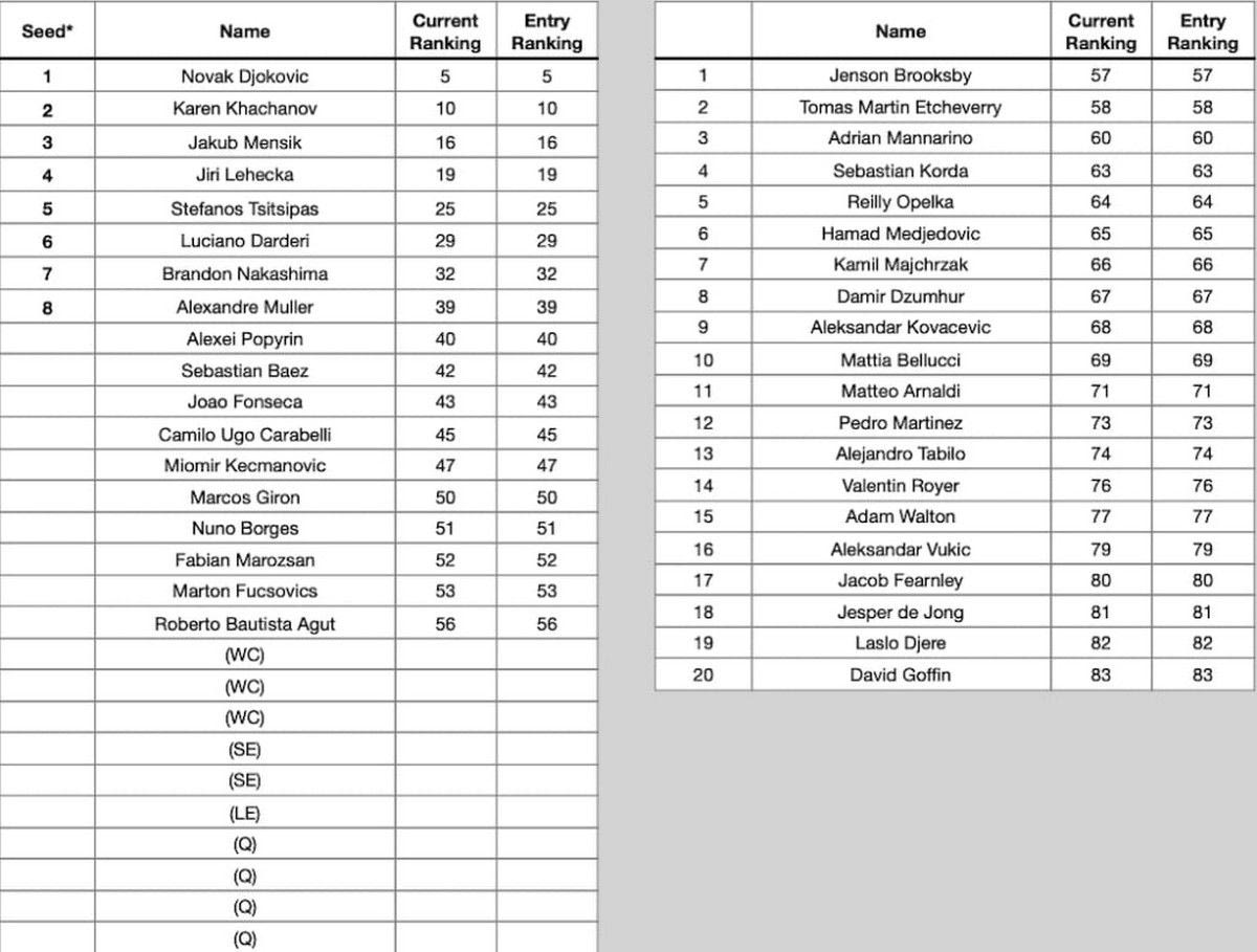 Περίπου έναν μήνα πριν από την έναρξη του τουρνουά έγιναν γνωστοί οι τενίστες και οι τενίστριες που θα λάβουν μέρος, μεταξύ των οποίων είναι οι: Στέφανος Τσιτσιπάς, Κάρεν Χατσάνοφ, Γιακούμπ Μένσικ, Γίρι Λεχέτσκα και Αλεξάντρ Μίλερ.