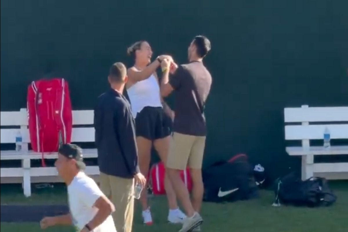 Λίγο αργότερα, ο Τζόκοβιτς αγκάλιασε και τον αρραβωνιαστικό της, συγχαίροντας το ζευγάρι για τον αρραβώνα τους σε μια στιγμή που κατέγραψαν οι κάμερες και έκανε τον γύρο των social media.