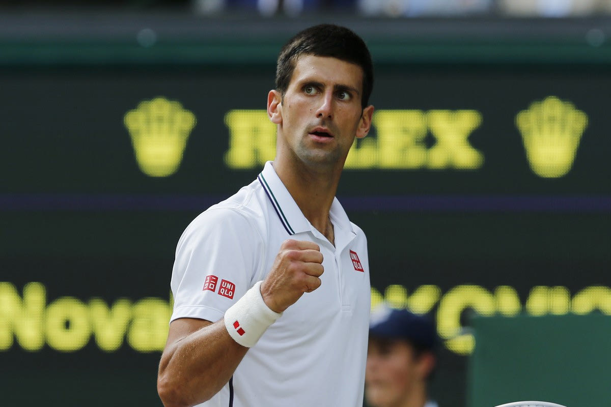 Ο Νόβακ Τζόκοβιτς πανηγυρίζει τη νίκη του κόντρα στον Ρότζερ Φέντερερ στο Γουίμπλεντον AP Photo/Ben Curtis