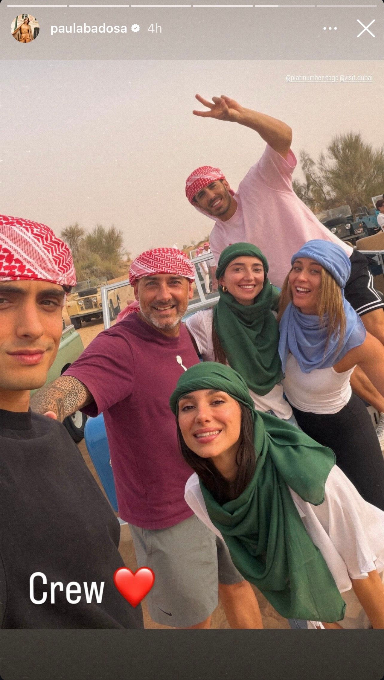 Στη συνέχεια, δημοσίευσε μια φωτογραφία με την παρέα της, όλοι ντυμένοι με παραδοσιακά μαντήλια σε έντονα χρώματα, έτοιμοι να εξερευνήσουν την έρημο. Στη λεζάντα έγραψε απλά: “Crew”, δείχνοντας πως πέρασε μια χαλαρή, γεμάτη γέλιο και καλή διάθεση μέρα μακριά από τα γήπεδα.
