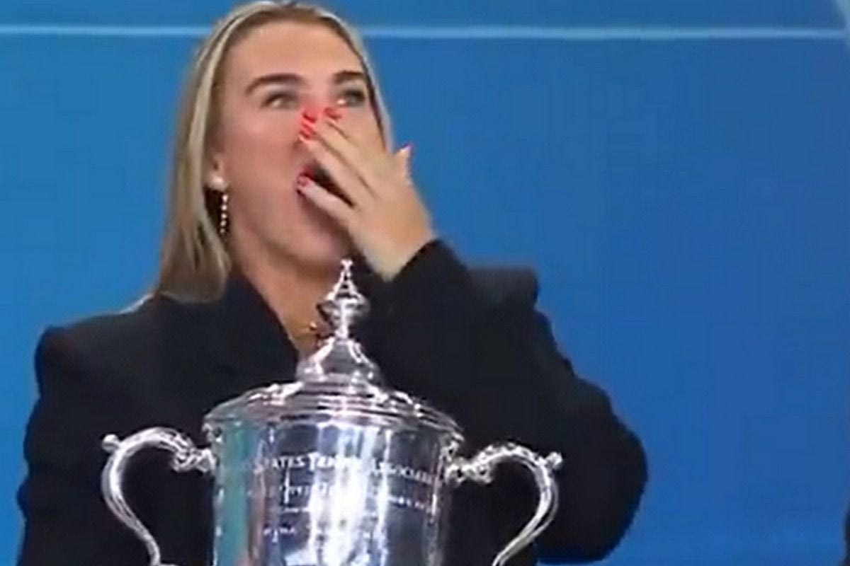 Θέλοντας να αναφερθεί σε μία συνομιλία που θα έχει στο Tik Tok με τον Αλκαράθ είπε ότι αυτή θα γίνει με τον Γιανίκ Σίνερ, με την Λευκορωσίδα να κάνει άμεσα τη διόρθωση μέσα σε γέλια των παρουσιαστών και τον Αλκαράθ να προσποιείται ότι προσβλήθηκε και ότι αποχωρεί από το στούντιο.