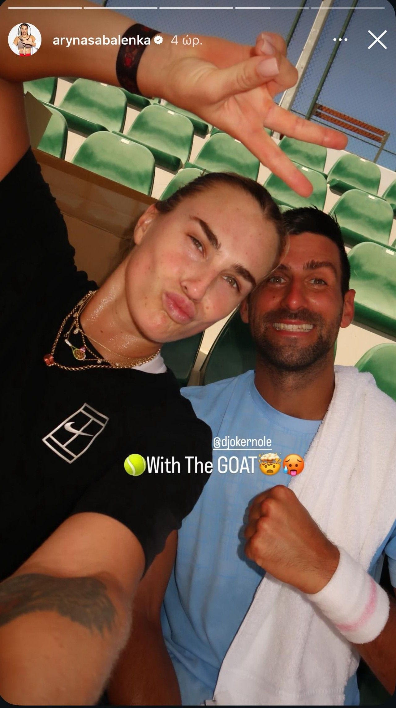 Η Αρίνα Σαμπαλένκα βρίσκεται στην Ελλάδα και την Τρίτη (23/09) κοινοποίησε στα social media μια selfie με τον Νόβακ Τζόκοβιτς.
