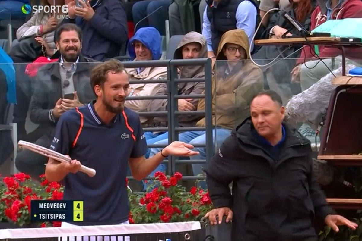 Ο Ντανίλ Μεντβέντεβ διαμαρτυρήθηκε για την κατάσταση του αγωνιστικού χώρου λόγω της βροχής και ο διαιτητής διέκοψε προσωρινά την αναμέτρηση με τον Τσιτσιπά στο πρώτο σετ.