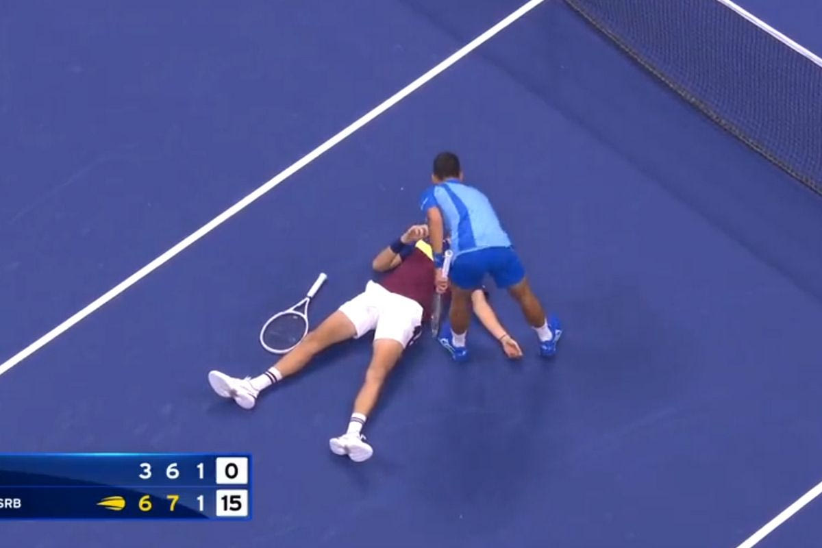 Ο Μεντβέντεφ έπεσε στο κορτ και ο Νόβακ Τζόκοβιτς έσπευσε να βεβαιωθεί ότι ο αντίπαλός του ήταν καλά, ενώ πήγε και στο μέρος του για να τον σηκώσει.