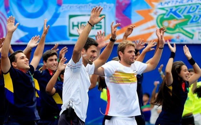 Ένα ολόκληρο στάδιο χόρεψε για χάρη των Νόβακ Τζόκοβιτς και Μάρντι Φις. Οι δύο τενίστες συμμετείχαν στις εκδηλώσεις που είναι αφιερωμένες στα παιδιά και διεξάγονται κάθε χρόνο πριν από το US Open (σ.σ. Arthur Ashe Kid’s Day).