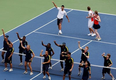 Σύντομα στο πάρτι προστέθηκαν τα ball boys και ball girls, ενώ ακόμα και θεατές κατέβηκαν από τις κερκίδες. Το συγκεκριμένο τραγούδι έχει σημειώσει θραύση στον αθλητισμό τους τελευταίους μήνες.