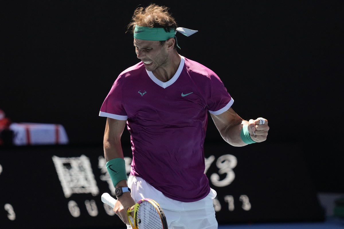 Ο Ναδάλ πανηγυρίζει στο Australian Open 2022 Simon Baker / AP Photo