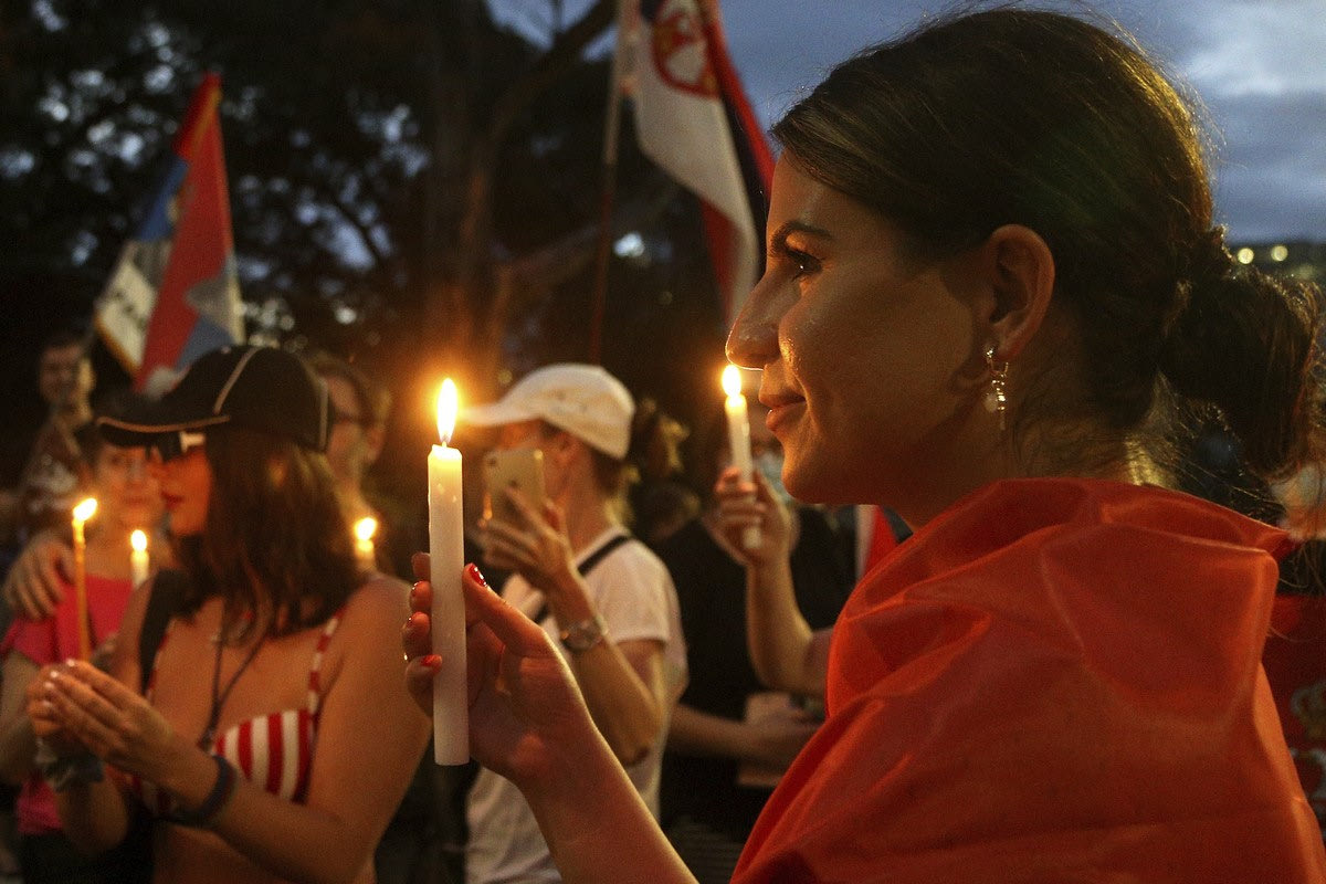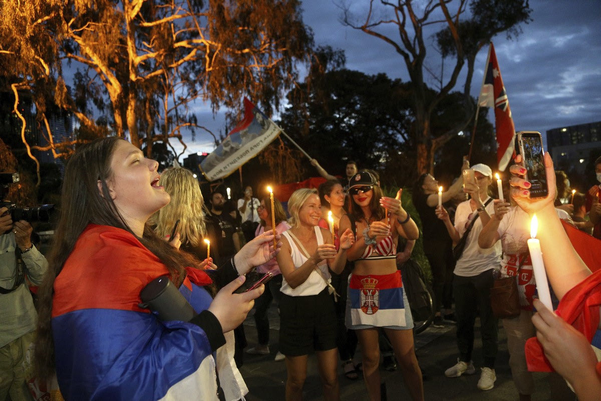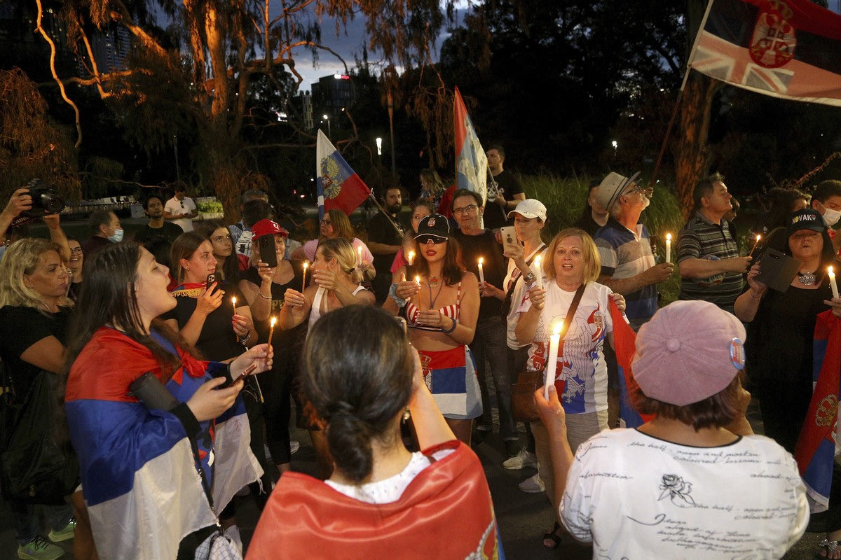 Υποστηρικτές του Νόβακ Τζόκοβιτς συγκεντρώθηκαν έξω από τη δομή που βρίσκεται ο Σέρβος στην Αυστραλία, διαδηλώνοντας υπέρ του. Με σημαίες της Σερβίας στους ώμους και αναμμένα κεριά στα χέρια, αρκετός κόσμος μαζεύτηκε έξω από το μέρος που παραμένει το Νο1 της παγκόσμιας κατάταξης εκφράζοντας την στήριξή του και φωνάζοντας συνθήματα υπέρ του.