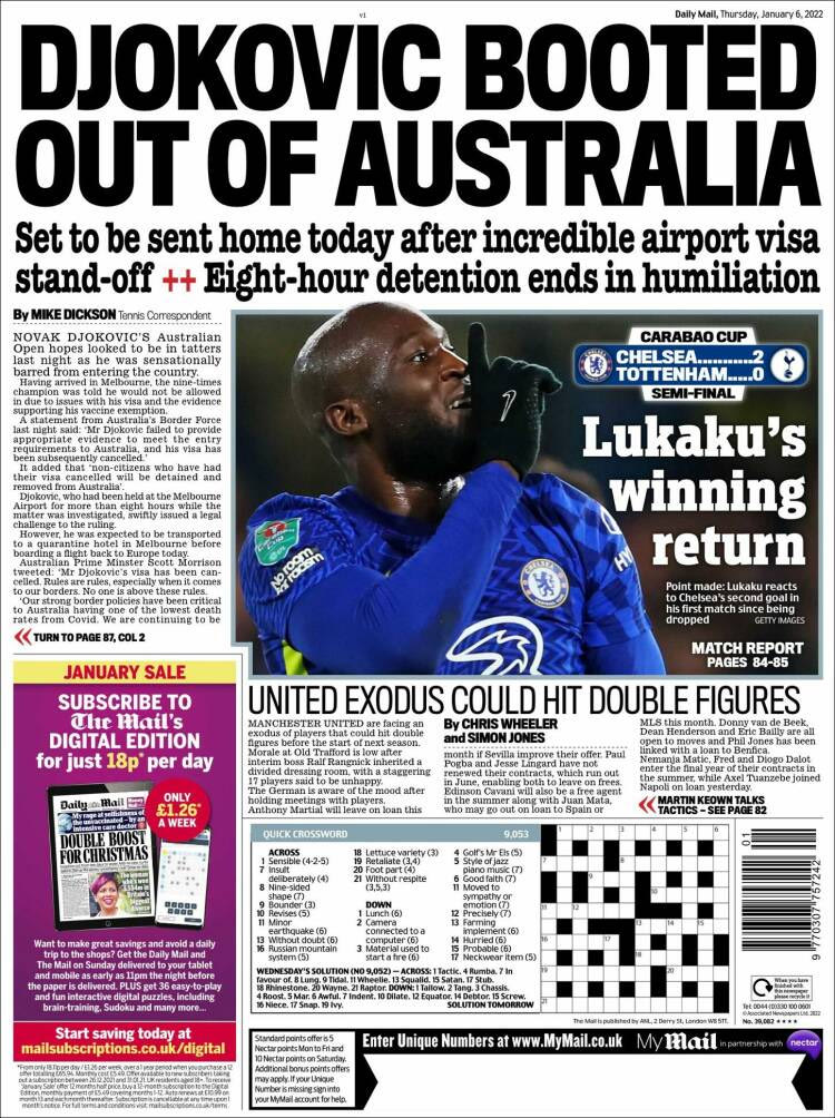 Το πρωτοσέλιδο της Daily Mail (06/01/2022)
