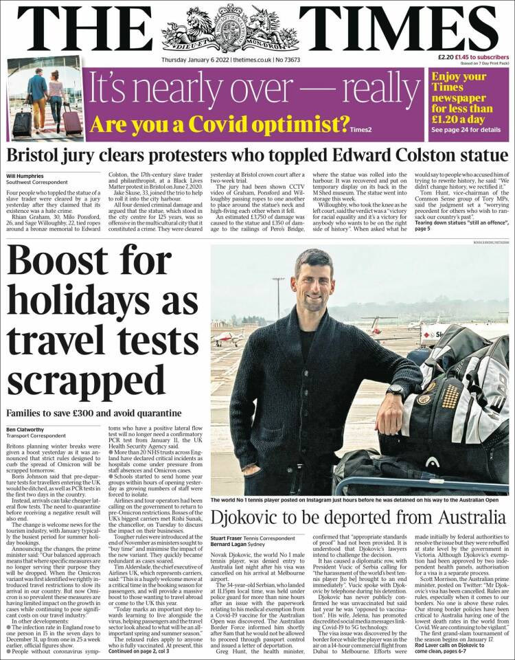 Το πρωτοσέλιδο των Times (06/01/2022)