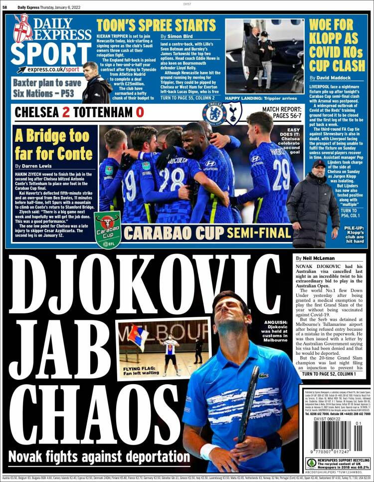 Το πρωτοσέλιδο της Daily Express (06/01/2022)