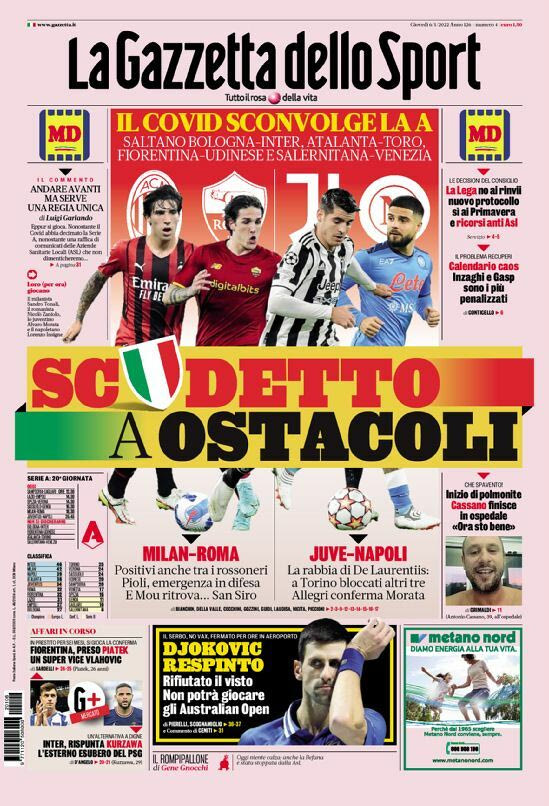 Το πρωτοσέλιδο της Gazzetta dello Sport (06/01/2022)