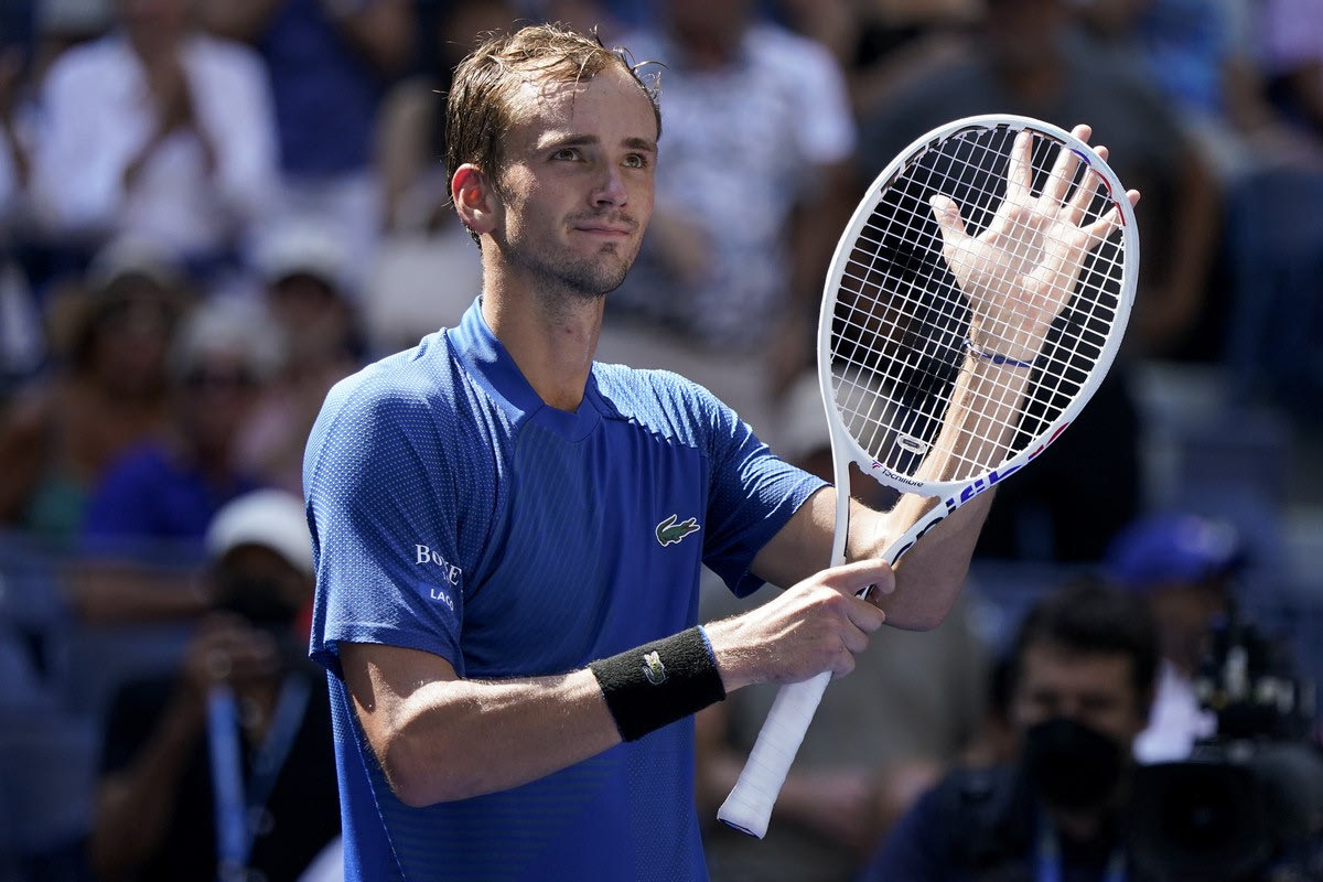 Daniil Medvedev, of Russia, reacts after defeating Stefan Kozlov, of the United States, during the first round of the US Open tennis championships, Monday, Aug. 29, 2022, in New York. (AP Photo/John Minchillo)