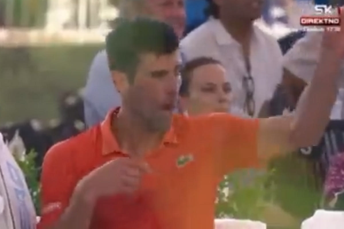 Ο Τζόκοβιτς έχασε τη ψυχραιμία του και κατευθύνθηκε έξαλλος προς την καρέκλα, φωνάζοντας στη διαδρομή και κάνοντας χειρονομίες προς τον αδερφό και τον μάνατζέρ του, που βρίσκοταν στο μποξ του, για να αποχωρήσουν.