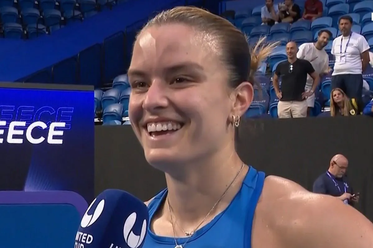 Η Μαρία Σάκκαρη αμέσως μετά τη νίκη επί της Οσάκα στο United Cup ρωτήθηκε για τον αρραβώνα της με τον Κωνσταντίνο Μητσοτάκη και δήλωσε πολύ τυχερή που είναι στη ζωή της.