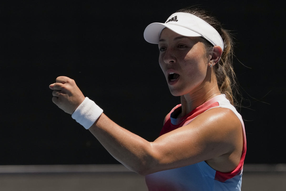 Η Τζέσικα Πεγκούλα πανηγυρίζει κατά τη διάρκεια του Australian Open