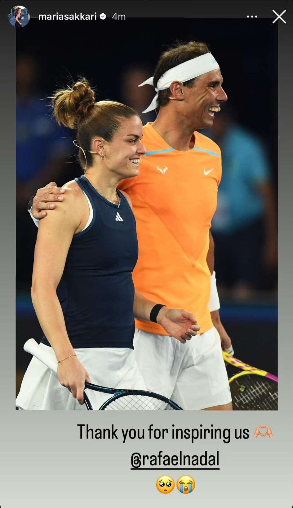 Η Μαρία Σάκκαρη μ' ένα μήνυμα στα social media ευχαρίστησε τον Ράφαελ Ναδάλ που με την καριέρα του ενέπνευσε πολλούς τενίστες.