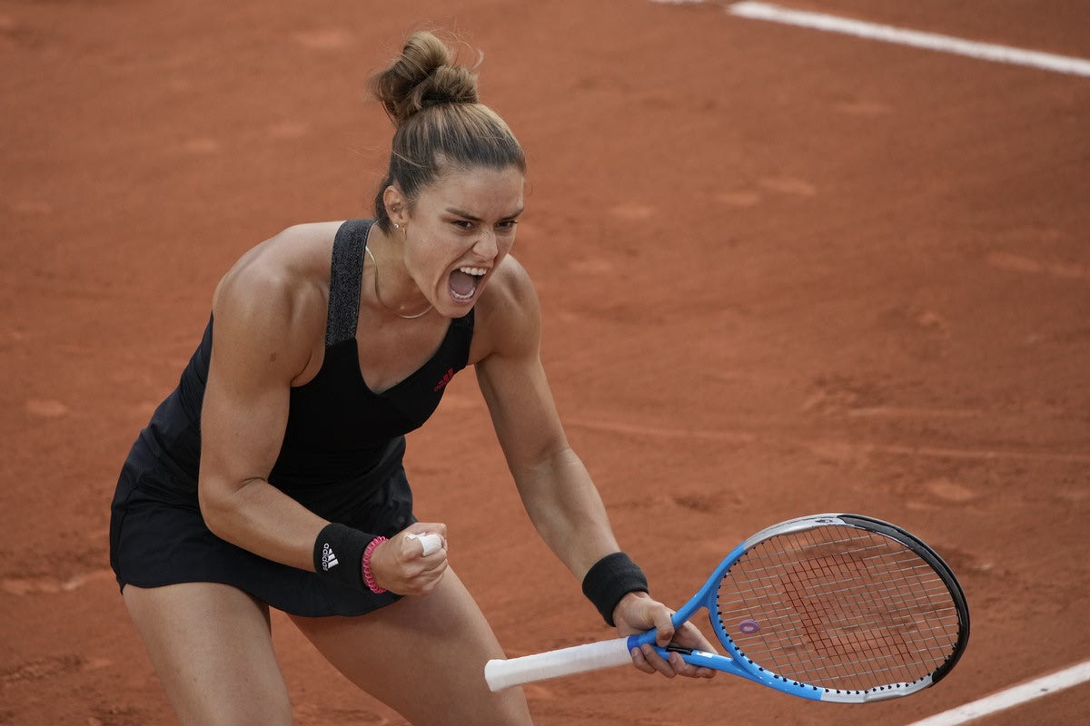 Η Μαρία Σάκκαρη πανηγυρίζει τη νίκη της επί της Μέρτενς /5-6-2021 2021 Christophe Ena/Associated Press