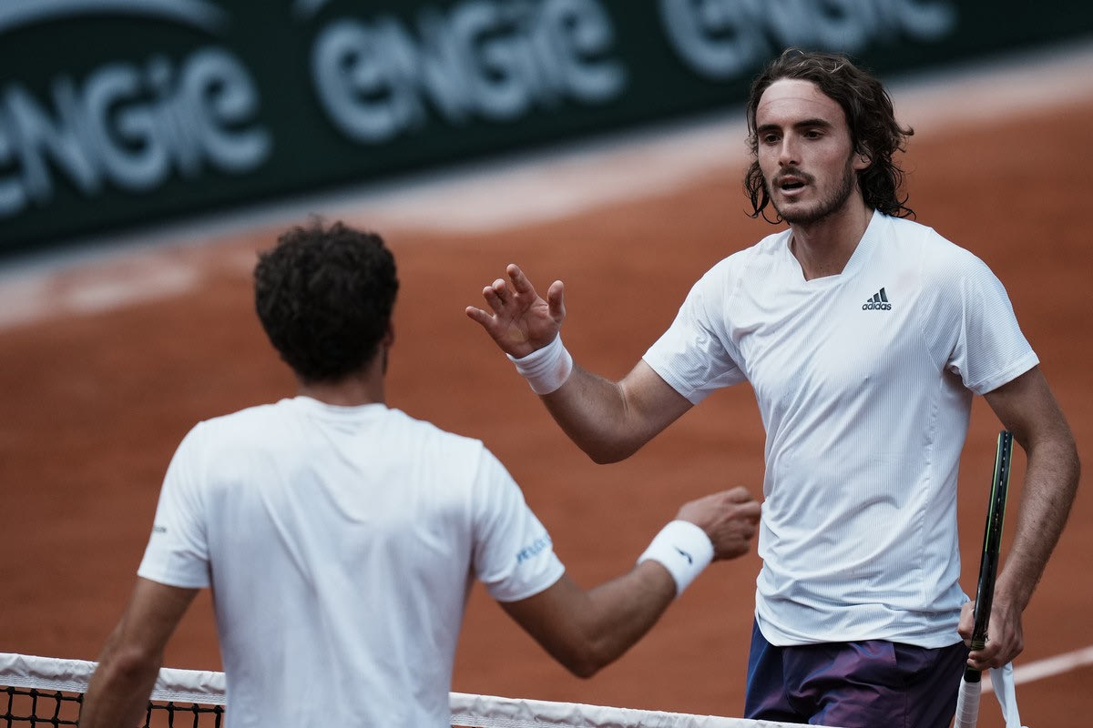 Ο Στέφανος Τσιτσιπάς μετά την πρόκρισή τους στους "8" του Roland Garros (6 Ιουνίου 2021)