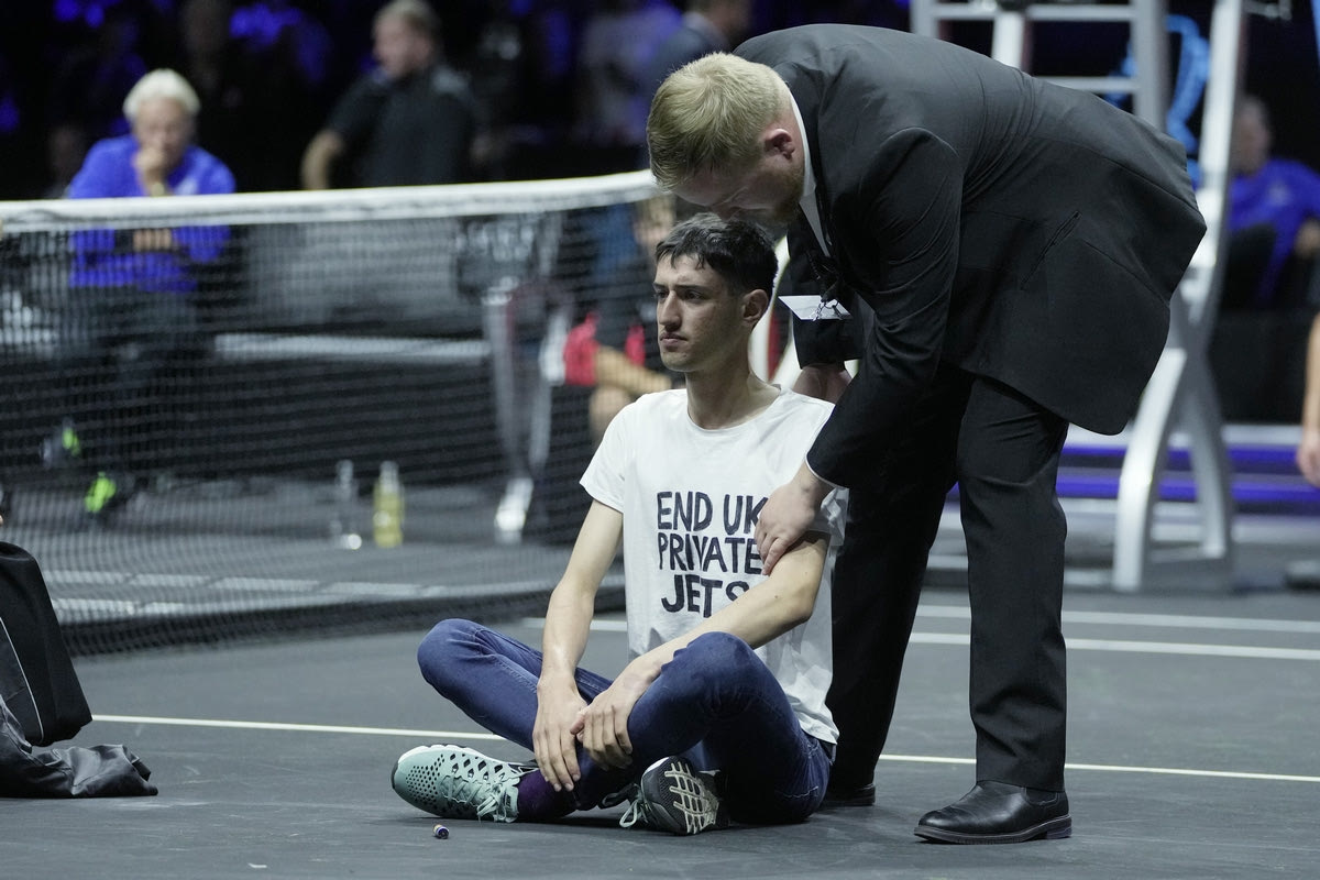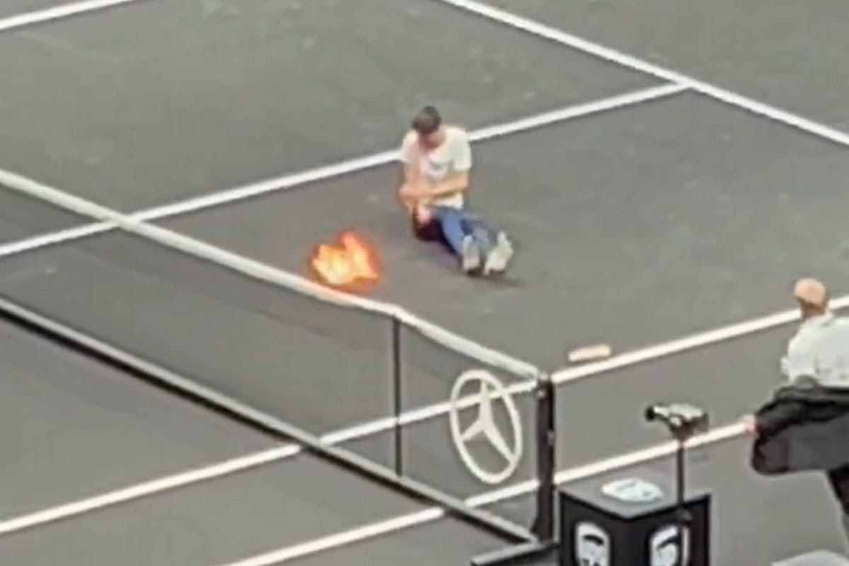 Ένα απίστευτο σκηνικό έλαβε χώρα κατά τη διάρκεια του αγώνα επίδειξης του Στέφανου Τσιτσιπά με τον Ντιέγκο Σβάρτσμαν για το Laver Cup, με έναν ακτιβιστή να εισβάλλει στο κορτ και να προκαλεί διακοπή, βάζοντας φωτιά στο χέρι του.
