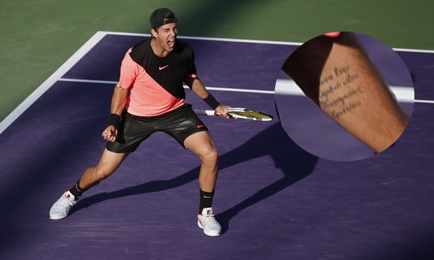 Η ενασχόληση των φίλων του τένις με τον Θανάση Κοκκινάκη έφερε και ερωτήσεις στο twitter σχετικά με το τι γράφει το τατουάζ του.