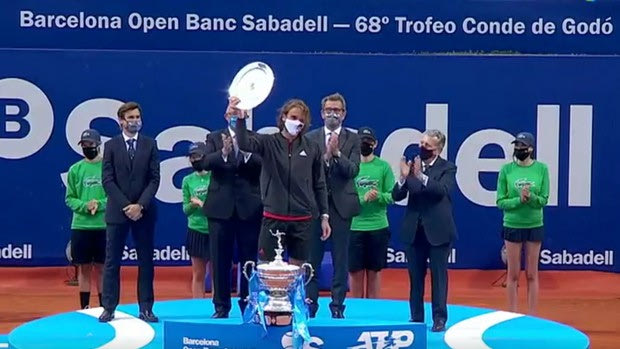 Ο Στέφανος Τσιτσιπάς κατά την απονομή του βραβείο για τη δεύτερη θέση στο Barcelona Open κατάφερε να αποσπάσει από τους Ισπανούς το παρατεταμένο χειροκρότημά τους για την προσπάθειά του.