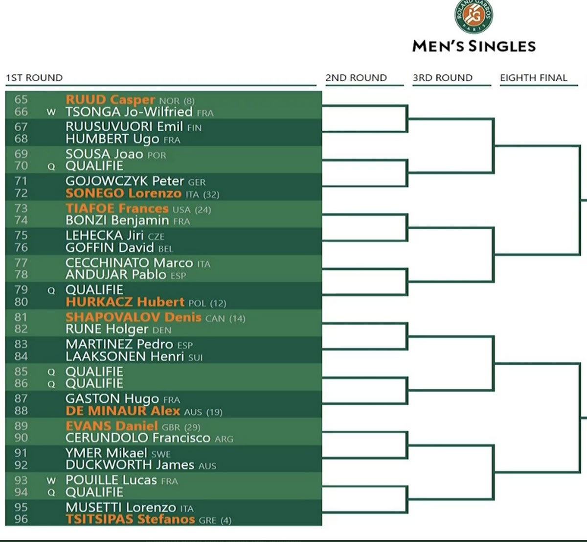 Βατή θα μπορούσε να χαρακτηριστεί η κλήρωση του Στέφανου Τσιτσιπά στο Roland Garros αφού αποφεύγει μέχρι τον τελικό του Τζόκοβιτς, Ναδάλ, Ζβέρεφ και Αλκαράθ.