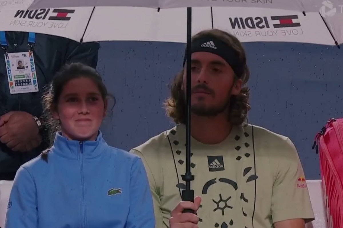 Ο Στέφανος Τσιτσιπάς πήρε την ομπρέλα από το ball girl και το έβαλε να καθίσει δίπλα του για να μην βρέχεται σε μία όμορφη κίνηση.