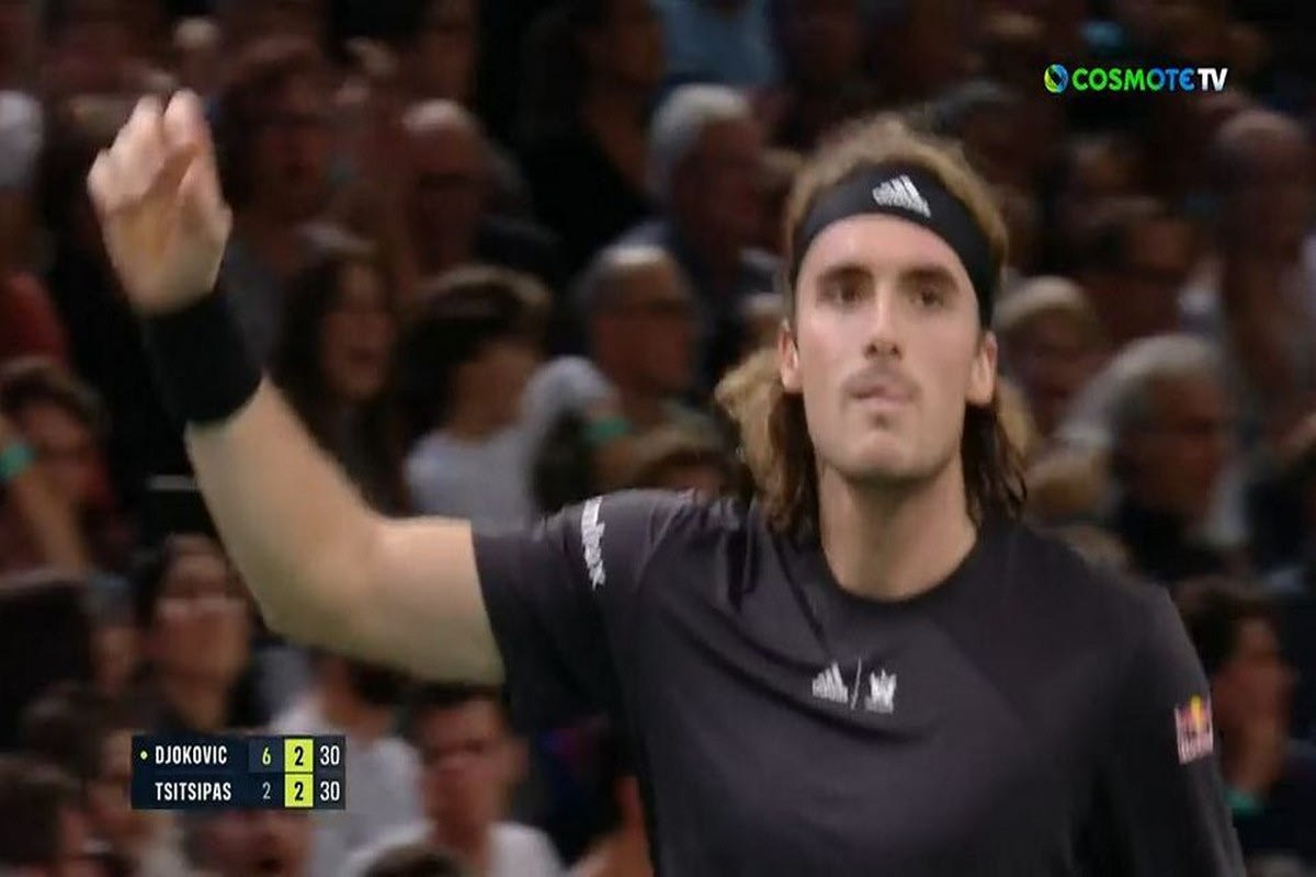 Ο Στέφανος Τσιτσιπάς στο πέμπτο game του δεύτερου σετ πίεσε τον Νόβακ Τζόκοβιτς και κατάφερε να φτάσει στο break.
