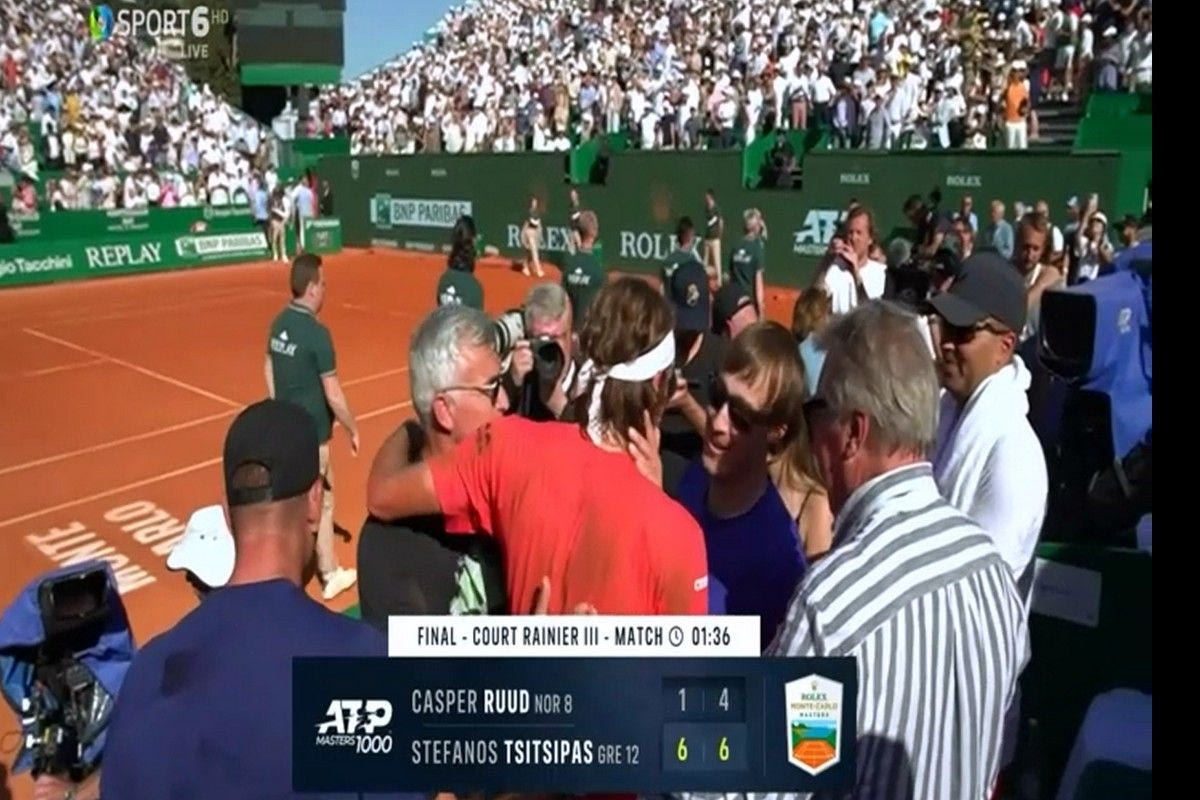 Ο Στέφανος Τσιτσιπάς πανηγύρισε με τον πατέρα του και τους υπόλοιπους ανθρώπους στο box του τη νίκη του επί του Ρουντ και την κατάκτηση του τίτλου στο Μόντε Κάρλο.