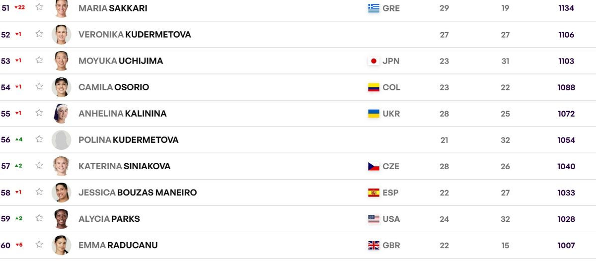 Συγκεκριμένα, η κορυφαία Ελληνίδα τενίστρια βρίσκεται στο Νο51 της WTA Rankings, σημειώνοντας πτώση 22 θέσεων, ενώ αξίζει να σημειωθεί ότι τελευταία φορά είχε βρεθεί εκτός Τοπ 50 ήταν τον Απρίλιο του 2019.
