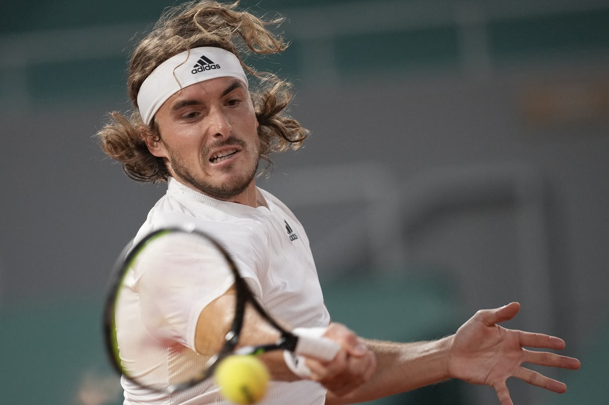 Ο Στέφανος Τσιτσιπάς σε στιγμιότυπο από τον αγώνα του με τον Τζον Ίσνερ στο Roland Garros 2021