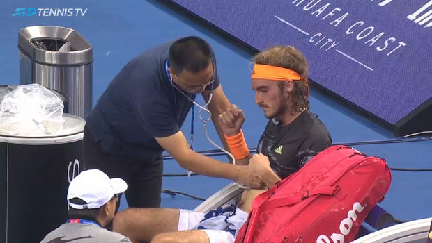 Ο Στέφανος Τσιτσιπάς εγκατέλειψε το ματς απέναντι στον Μαναρινό στο τουρνουά της Ζουχάι λόγω αδιαθεσίας στο τρίτο σετ. Ο 21χρονος πρωταθλητής ένιωσε έντονη δυσφορία κατά την διάρκεια του αγώνα ζητώντας από τον γιατρό να κατέβει να τον δει, όμως το αναπνευστικό πρόβλημα που τον ταλαιπωρούσε έκανε δύσκολη την κατάστασή του και δεν κατάφερε να συνεχίσει.