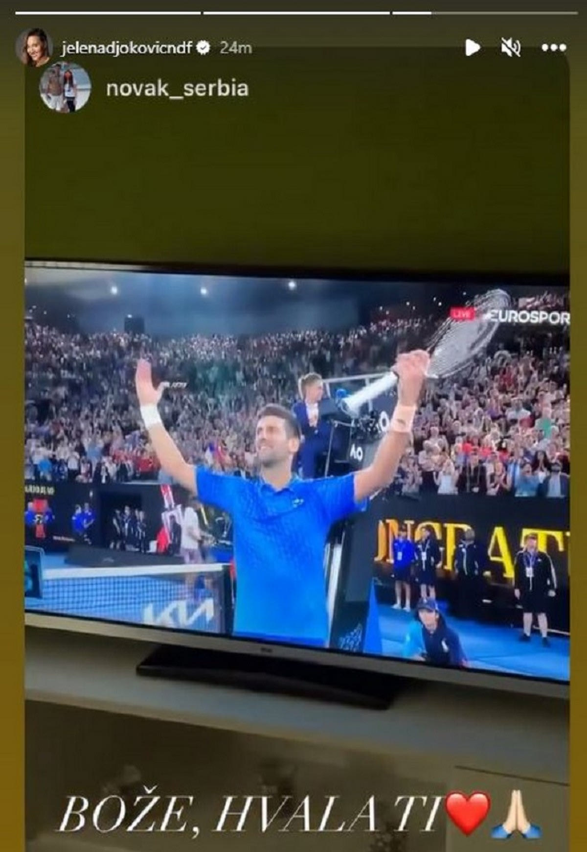 Η Γέλενα Τζόκοβιτς παρακολούθησε τον τελικό του Australian Open από το σπίτι της και πανηγύρισε για την κατάκτηση του τίτλου από τον Νόβακ Τζόκοβιτς.
