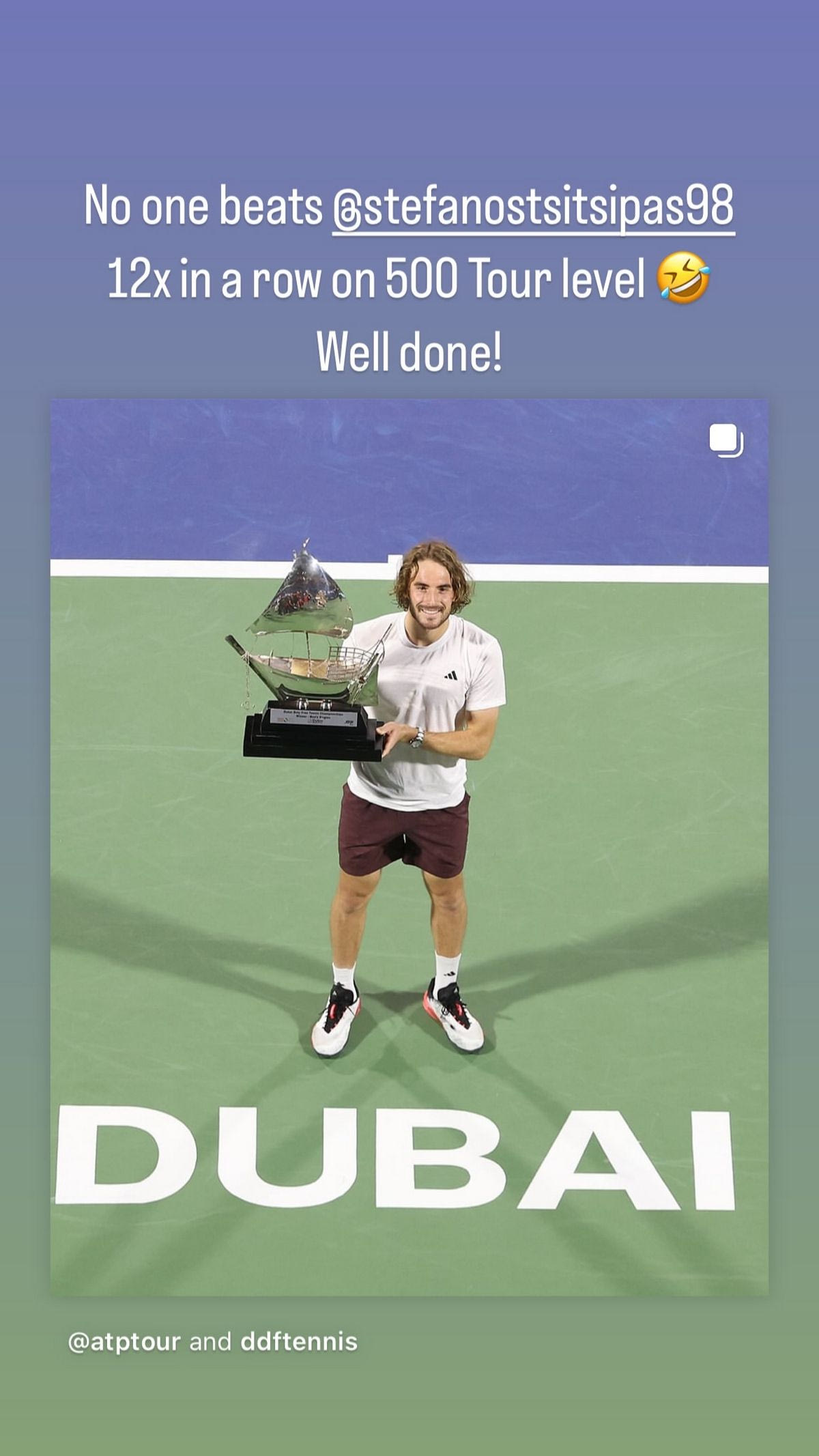 “Κανείς δεν κερδίζει τον Στέφανο Τσιτσιπά 12 σερί φορές σε 500άρι τουρνουά. Συγχαρητήρια”, έγραψε ο “Νόλε”.