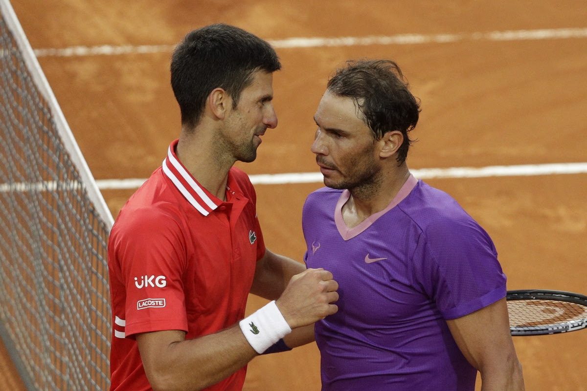 Ο Ράφαελ Ναδάλ και ο Νόβακ Τζόκοβιτς στη μεταξύ τους μονομαχία στο Masters της Ρώμης © 2021 Gregorio Borgia/Associated Press
