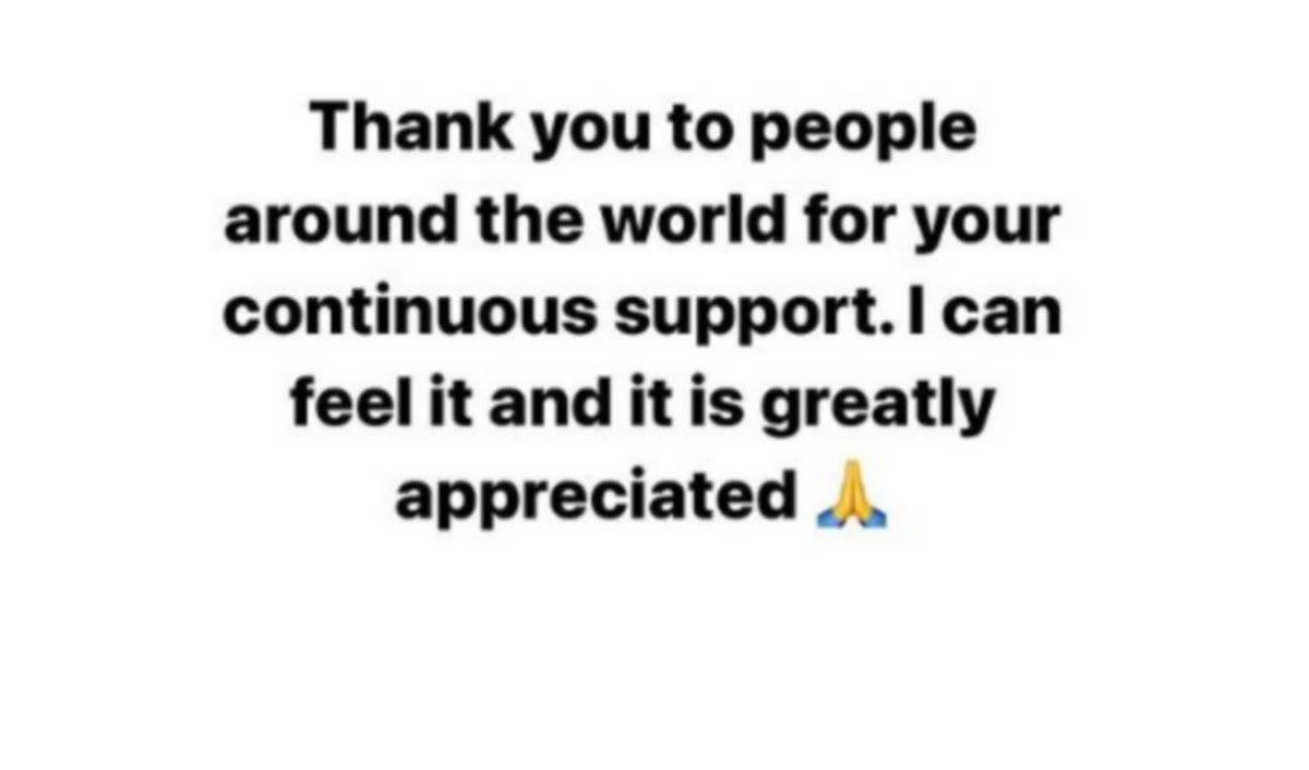 “Ευχαριστώ όλο τον κόσμο ανά τον πλανήτη για τη συνεχή σας στήριξη. Μπορώ να την αισθανθώ και την εκτιμώ” ανέφερε συγκεκριμένα.