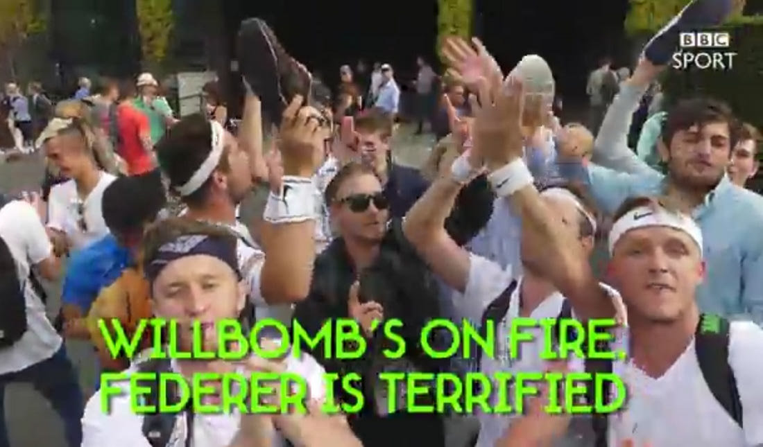 Η κάμερα του BBC τους εντόπισε εκτός του κεντρικού κορτ και λίγη ώρα πριν την αναμέτρηση με τον Ρότζερ Φέντερερ και εκείνοι τους παρουσίασαν τα συνθήματα που έχουν βγάλει για τον Μάρκους Γουίλις. Ανάμεσα τους και το “Willbomb’s on fire, Federer is terrified” το οποίο είναι φυσικά βασισμένο στο “Will Grigg’s on fire” που έκανε θραύση στο Euro και… παρουσιάζει τον Φέντερερ να είναι τρομοκρατημένος από τις καυτές “βόμβες” του Γουίλις.