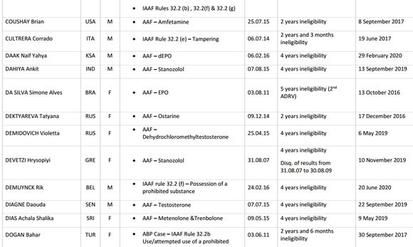Αναλυτικά εδώ η πλήρης λίστα της παγκόσμιας ομοσπονδίας στίβου (PDF)