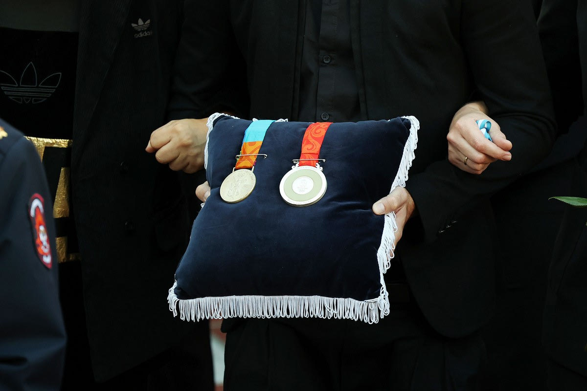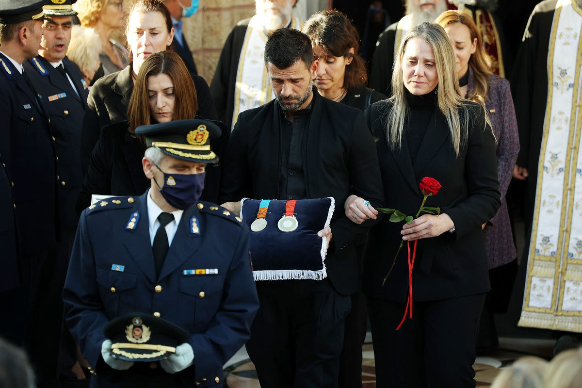 Ο Μιχάλης Μουρούτσος μετέφερε τα μετάλλια του φίλου και συναθλητή του, Αλέξανδρου Νικολαΐδη κατά τη διάρκεια της εξόδιου ακολουθίας του.