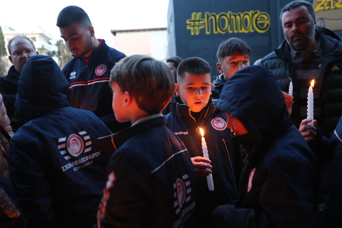 Ανάμεσα τους υπήρχαν παιδιά με φανέλες του ΠΑΟΚ, παιδιά από τις σχολές ποδοσφαίρων του Ολυμπιακού, αθλητές άλλων συλλόγων και όλοι μαζί χωρίς να μιλάνε περπάτησαν όλη τη διαδρομή μέχρι τον Λευκό Πύργο.
