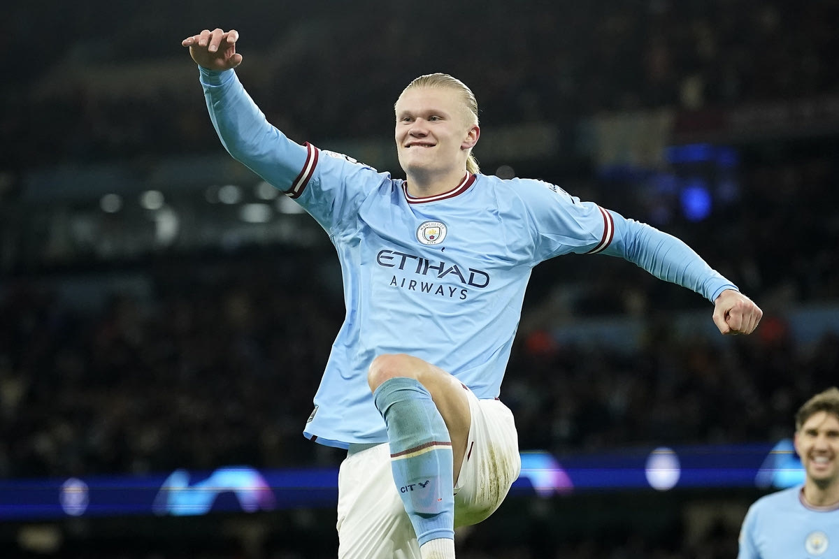 Ο Έρλινγκ Χάλαντ πανηγυρίζει το γκολ του κόντρα στη Λειψία