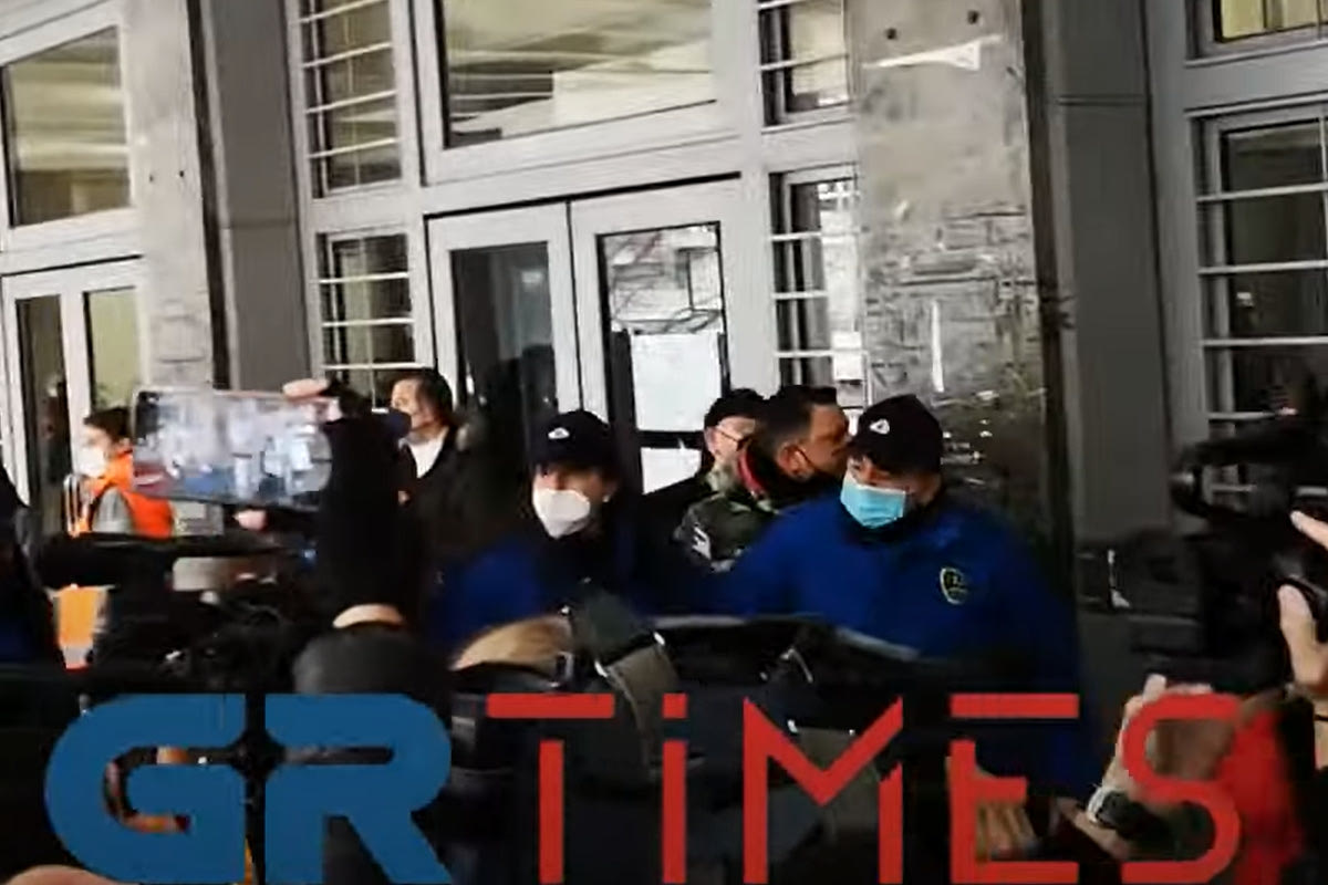 Σύμφωνα με το GRTimes.gr σημειώθηκε ένταση στα δικαστήρια της Θεσσαλονίκης όταν κόσμος που ήταν συγκεντρωμένος προπηλάκισε άτομα που προσήχθησαν με χειροπέδες και μαύρα ρούχα.