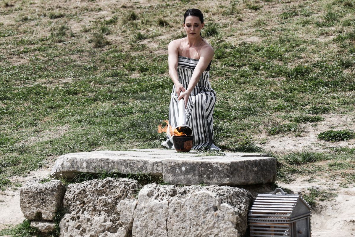 Τα σύννεφα δεν επέτρεψαν στο Ιερό Φως να γεννηθεί από το κάτοπτρο και χρησιμοποιήθηκε η Φλόγα από την Επίσημη Πρόβα. Στη συνέχεια η Πρωθιέρεια Μαίρη Μηνά, τη μεταλαμπάδευσε στον πρώτο Λαμπαδηδρόμο, τον Ολυμπιονίκη Στέφανο Ντούσκο και στέλνοντας τα μηνύματα της ειρήνης, της φιλίας και της αλληλεγγύης σε όλη την οικουμένη.